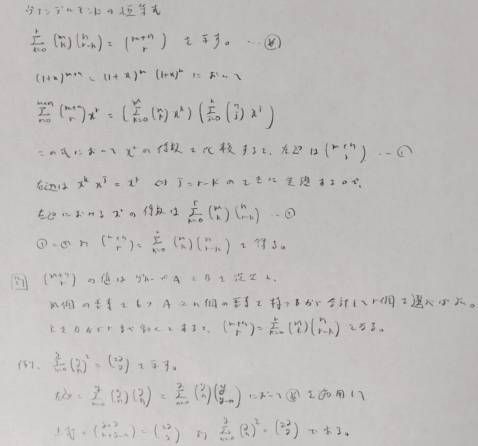 本問で用いた公式はヴァンデルモンドの恒等式というものの一種です。これを紹介し導いておきます。