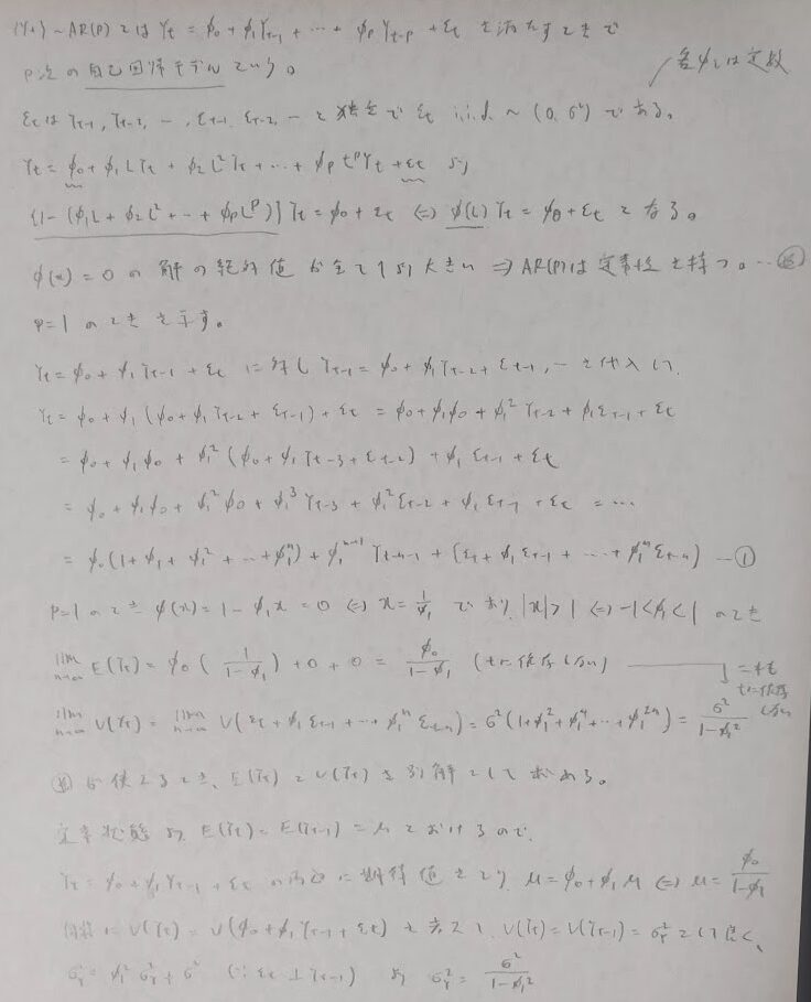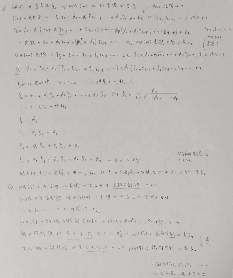 典型問題ですが、そもそも定常性が満たされないと、いつもの公式が使えないので注意しましょう。