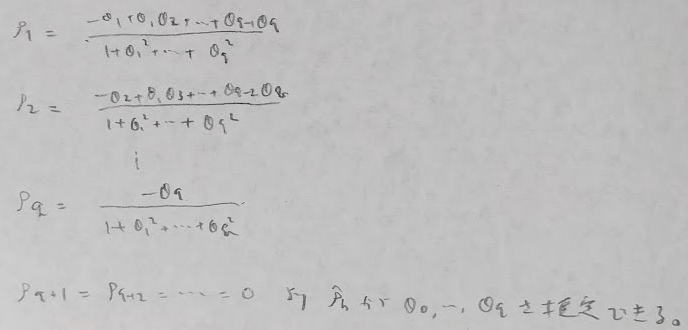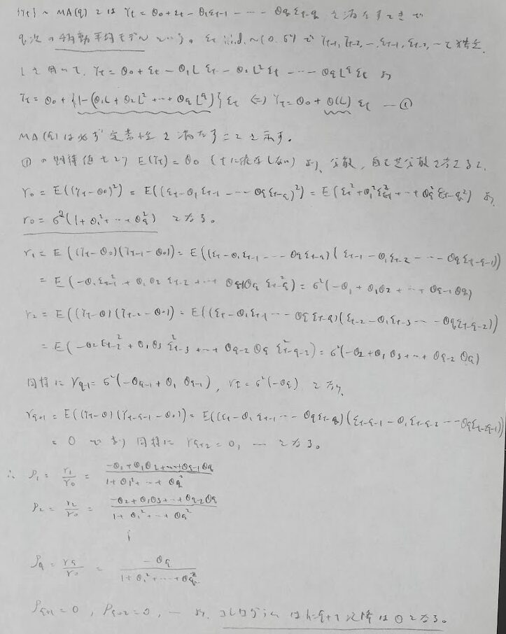 モデル別に見ていきますとAR(p)がやや複雑ですが、MA(q)は単純です。