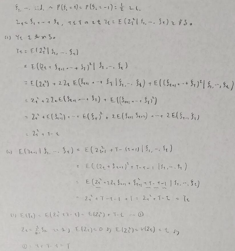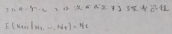 また似た概念にマルチンゲールがあります。これは期待値で定義されます。