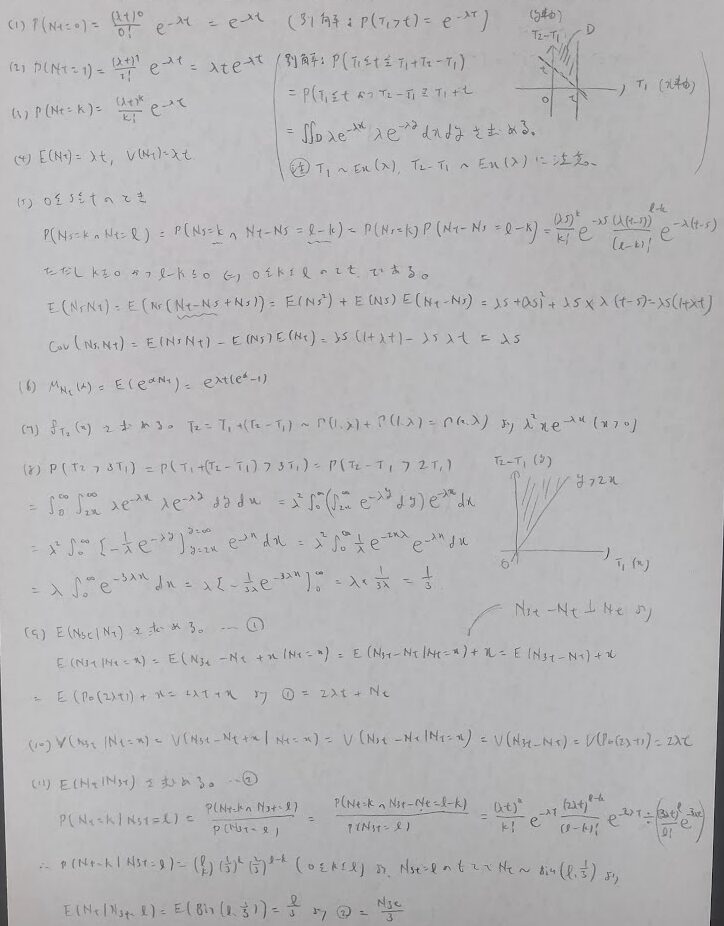 ポアソン過程の追加問題『弱点克服 大学生の確率・統計』より