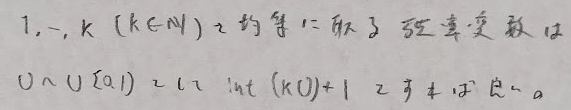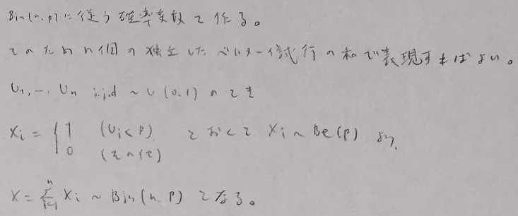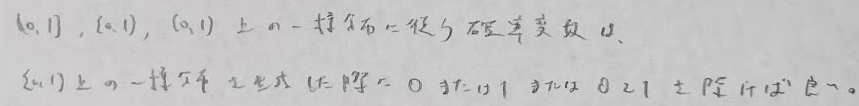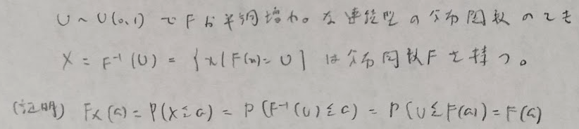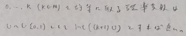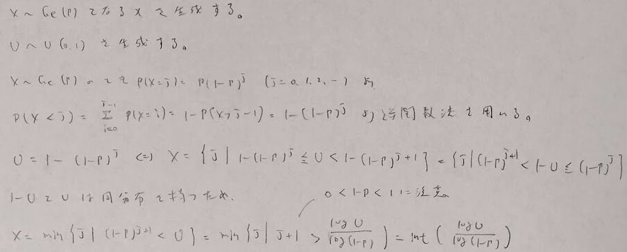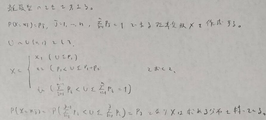 過去問には載っていませんが指定教材に掲載されている乱数生成の方法についてまとめておきます。離散分布の場合の方が難易度が高いです。ガウス記号(int関数)を多用するためです。