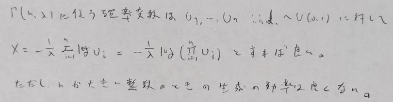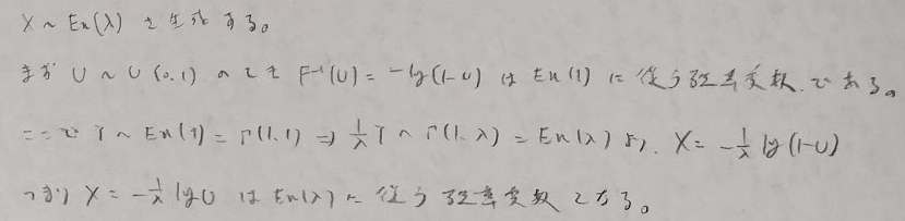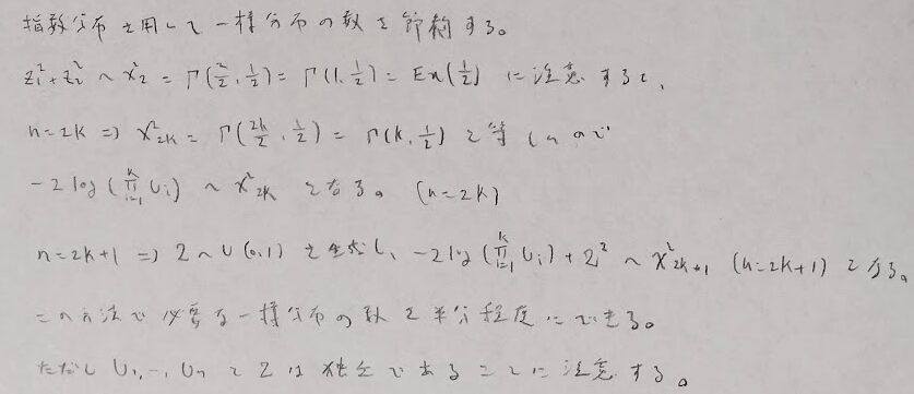 一様乱数が多いので、この量を半分程度にするために指数分布を利用することを考えます。