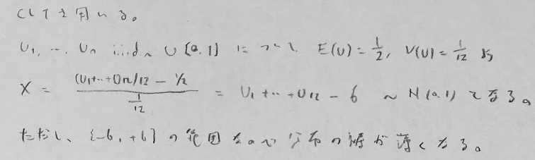 アクチュアリーの公式書の中に言及はありませんが十分に試験範囲として機能しそうなため掲載します。下記に作成方法を掲載していますが、前提条件として2つの独立な標準一様乱数を作成しておきます。
