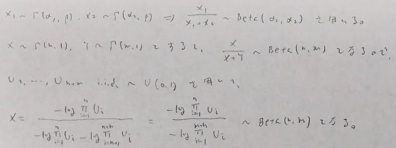 パラメータ1に従う指数分布を挟むことがポイントです。
