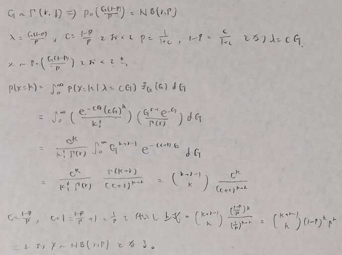 次にガンマ分布とポアソン分布との混合分布として表現する方法がありますので、命題を証明しておきます。