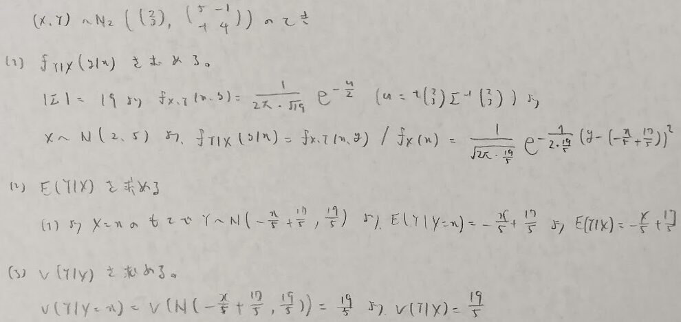 1変量正規分布を扱います。頻度は高くないですが条件付き分布の例題を紹介します。