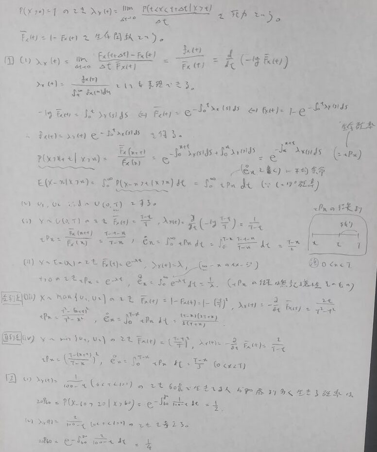 連続分布の応用として死力(故障率・危険率)の問題を『弱点克服 大学生の確率・統計』を題材に解いてみましょう。