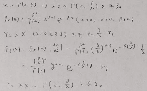 アクチュアリー数学でよく使う公式TOP5には入るガンマ分布の変換公式を証明しておきます。