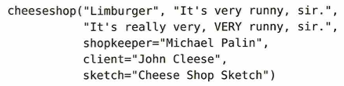 キーワード引数とは、キーワード=値の形式で与える引数です。