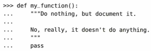 ドキュメンテーション文字列の1行めは大文字で開始してピリオドで終わります。