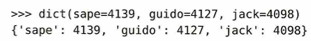ディクショナリは、dict("carrot"=80, "tomato"=100)と書くことはできません。