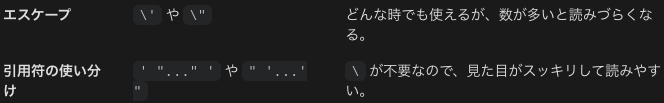 """…"""や'''…'''のようにダブルクォーテーションやシングルクォーテーションを3つ使って囲めます。これを三重引用符といい、文字列内で直接改行できます。""…""のような記述はできません。位置, / ,位置またはキーワード, *, キーワードです。