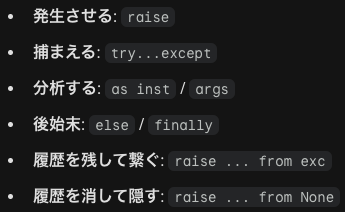 raise 新しい例外 from 古い例外で例外の連鎖となります。