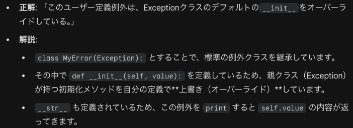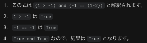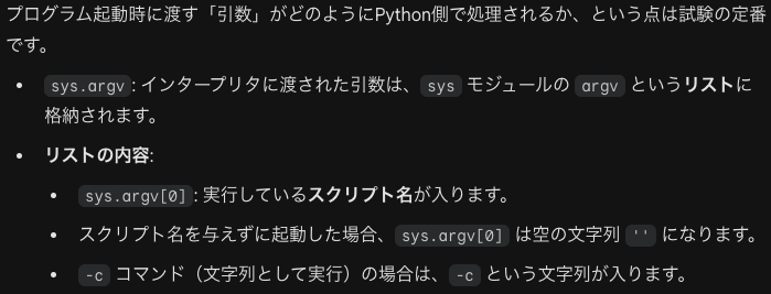 引数部分の : int や : str もすべてアノテーションに含まれます。アノテーションは引数と戻り値の両方に記述できる「注釈」のことです。__annotations__ という属性に保存される、という名前が問われることがあります。ネストしたリスト(行列)の縦と横を入れ替える「転置」に関するものにおいて、list(zip(matrix)) と、アスタリスク(*)を忘れるとエラーまたは意図しない結果になります。正しいコードは power = list(zip(*matrix))です。(-1, -10, -3, -4) > (-1, -2, -5)はFalseで、1 > -1 == (1-2)はTrueです。