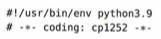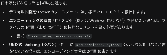文字コードはUTF-8です。それ以外だと文字コードを指定する必要があります。# _*_ coding: 文字コード _*_で文字コードを指定します。