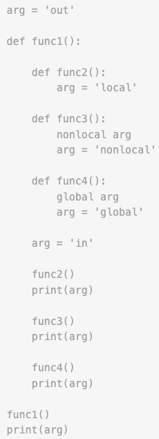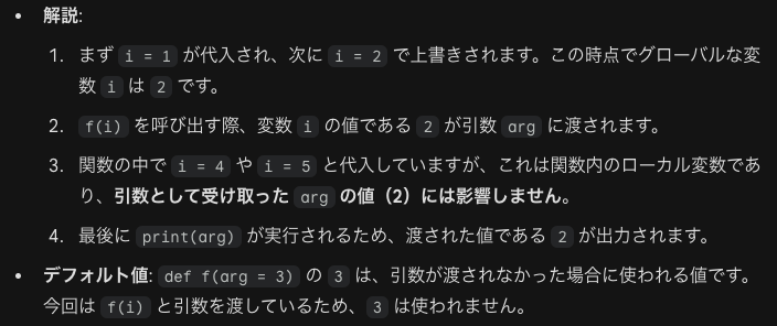 例えばグローバル変数でx=100と定義してその後にローカル変数でx=200と定義してxを出力してもグローバル変数の100が出力されます。一方でローカル変数でglobal()でxを再定義した場合は出力は上書きされた200が出されます。またローカル変数でデフォルト値を設定した後でその変数を再定義しても関数内のローカル変数は変わりません。