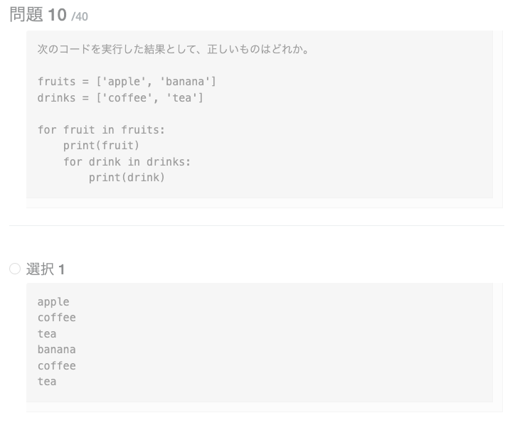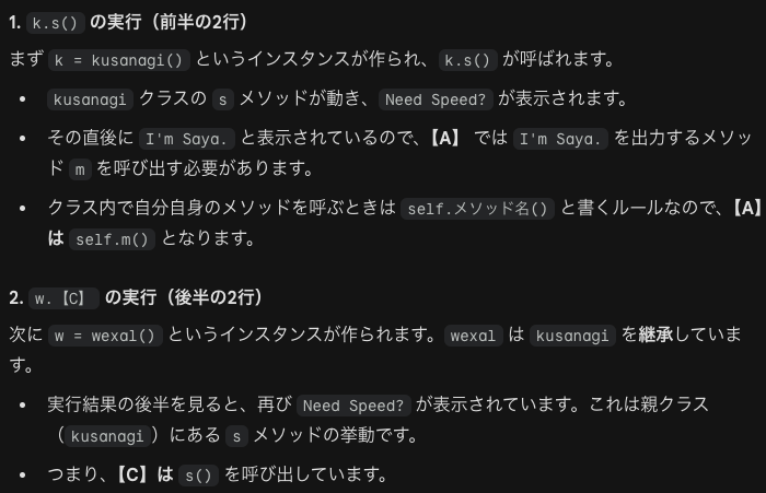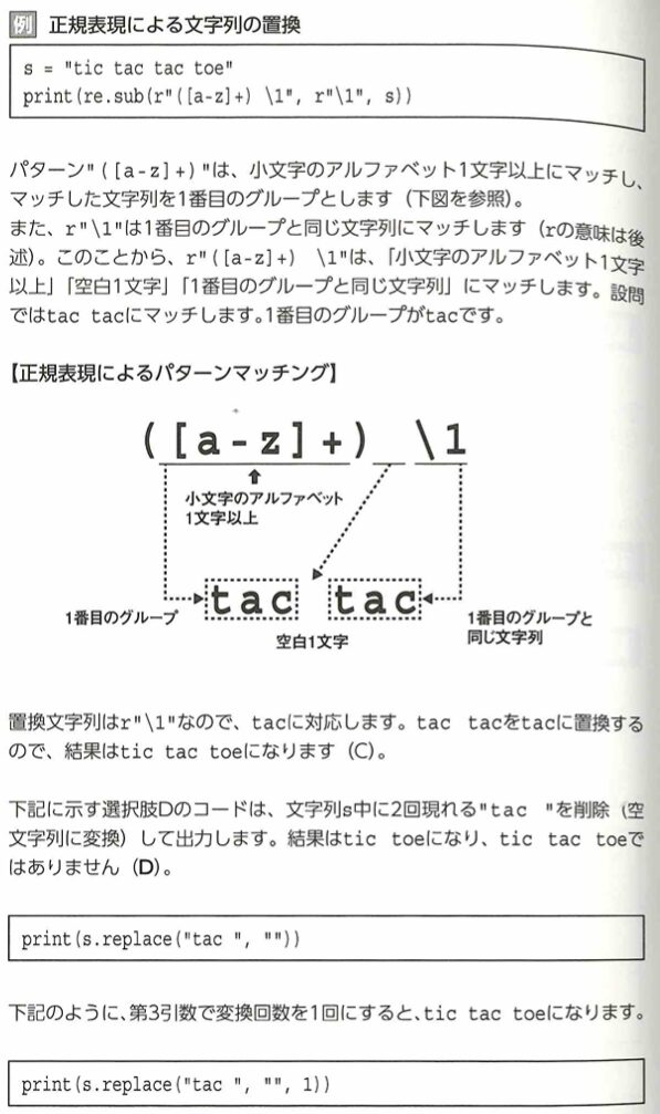 山場です。基本情報技術者試験の時のような疑似言語とは異なり、Python特有の関数の定義を覚えていないと解けない問題です。特にconcatの問題(リストやタプルとして与えられた引数に関する問題)がとても理解しづらいです。