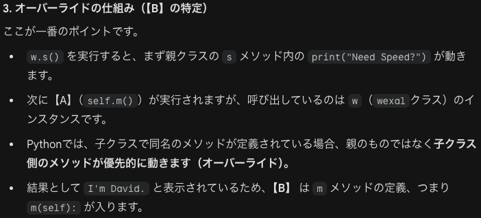 試験前日で黒本の復習を終えたところですが、クラスの章など、難しい章も黒本に出ている内容はしっかり把握しておくことが大事だと思いました。なぜならそれらの内容が基となっている問題が模試で何問か見受けられたためです。