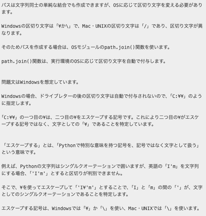 プログラム内で書かれている "\\" は「バックスラッシュ1本」を表すための書き方であることに注意しましょう。