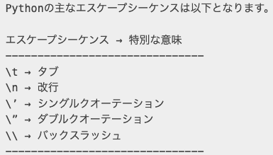 Pythonの文字列では改行は次の改行文字(\n)で表され1文字として扱われます。