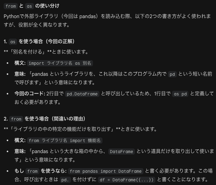 Pythonのインポートは 「どこから (from) 」「何を (import) 」 持ってくるかという順番で書きます。