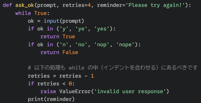 しかし実務では引数のデフォルト値をリストにすることは避けるべきです。