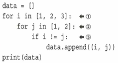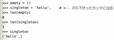 for, if文で代入した変数は、それぞれの文の外から参照できます。要素が1つのタプルを作るとき、最後にカンマを付けます。