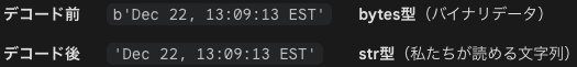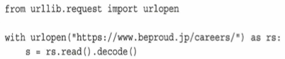 urlopen()は組み込み関数のopen()と同じように扱えますが、対象のデータをバイナリモードで取得します。バイナリデータを文字列に変換するためにdecode()関数を用います。