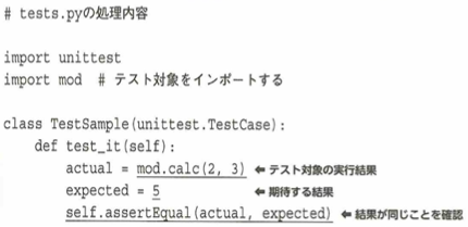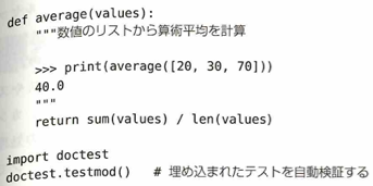 上記を実行すると、doctest.testmod()が、モジュール内の関数のドキュメンテーション文字列を調べま