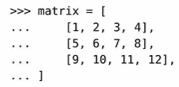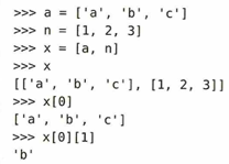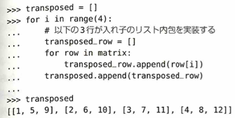 入れ子(ネスト)構造は、[リスト1,リスト2,リスト3]などです。例えばdata[i][j]とはi番目のブロックの中のリストのj番目の数という意味です。