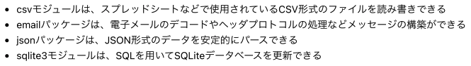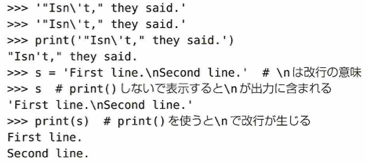 Pythonは読みやすく、書きやすく、他のスクリプト言語(AwkやPerl)よりも汎用性が高いです。スクリプト名やそれ以降の引数群は、文字列のリストとして扱われます。これにアクセスするためにインポートすべきモジュール名は sys であり、リスト名は argv です。コマンドライン引数は文字列のリストになり、import sys をして sys.argv で取得します。対話型インタープリタでは文字列は引用符に囲まれ、特殊文字はバックスラッシュでエスケープされた状態で出力されます。print() 関数では...エスケープ文字や特殊文字がプリントされた状態で出力されます。raw文字列を作るには、単語の raw ではなく、引用符の前に r を一文字だけ置きます。range(Zen[0:5]) はエラーになります。range() の引数には、リストではなく「整数」を渡す必要があります。