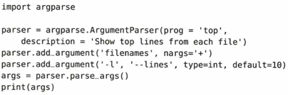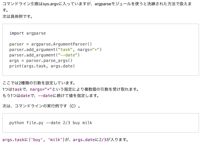argparseモジュールのArgumentParser()を用いた場合でもコマンドライン引数を取得できます。sysモジュールのargv属性よりも扱いやすいコマンドラインのインターフェースを作成できます。