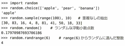 random.choice(range(10))は0~9のうち1個がランダムに選ばれます。対してrandom.choice()は0以上1未満のランダムな値(小数)を返します。分散は不偏分散の意味です。