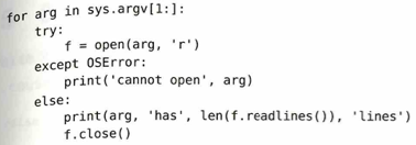 tryのelse節はtry節が例外を送出しなかった場合に実行されます。try文のexcept節は、try節から呼び出された関数で発生した例外も処理します。