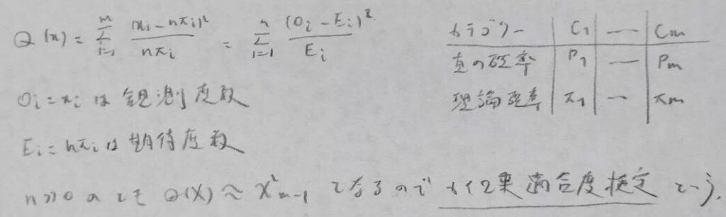 適合度検定とカイ2乗検定との間の関係式を本章では約束事の上で使用してきました。今回はその関係性を導いてみます。