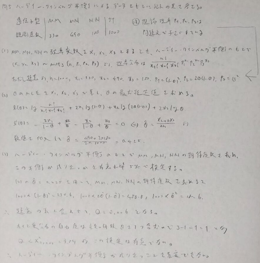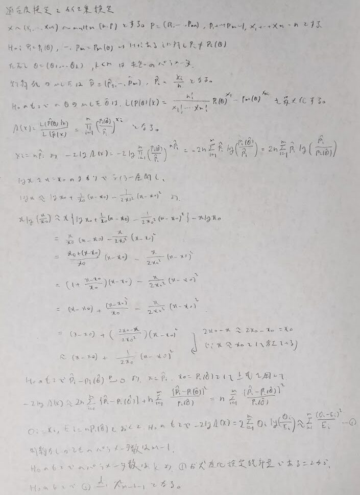 難しそうな名前ですが、多項分布から出発しパラメータの最尤推定値を求めて、それらを用いて理論確率を出して、カイ2乗適合度検定に帰着させます。