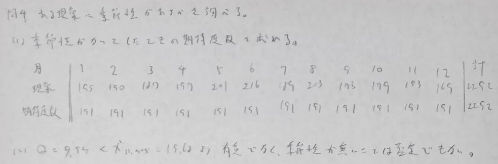 問1とほぼ同じですが。理論確率を求める際に計算が必要です。