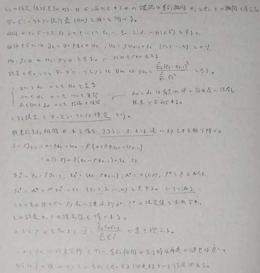 系列相関を調べることにより誤差項の無相関性について検討することができます。