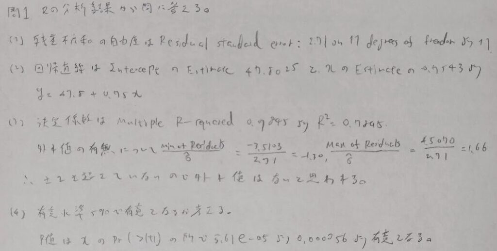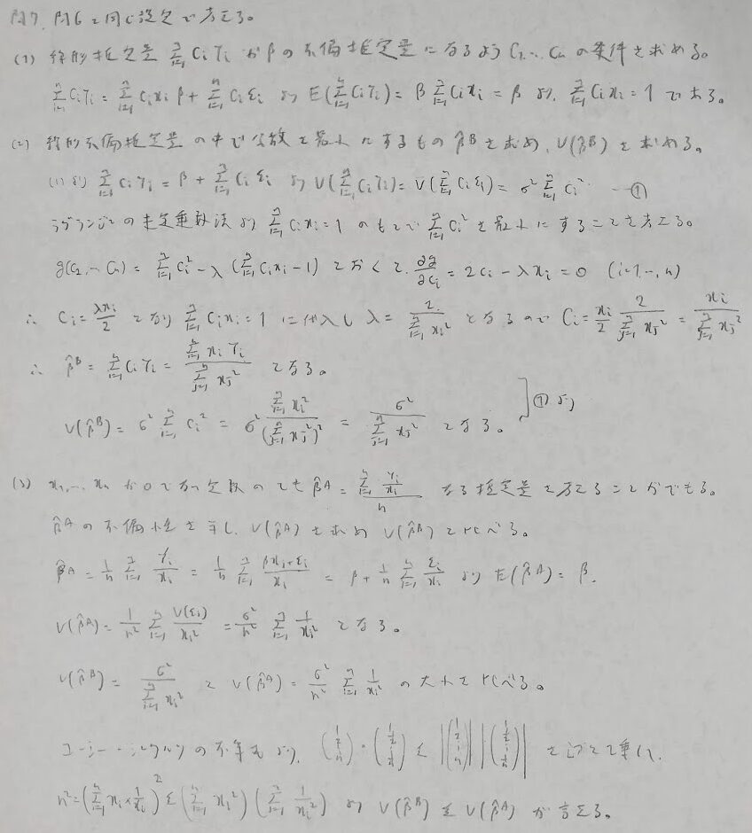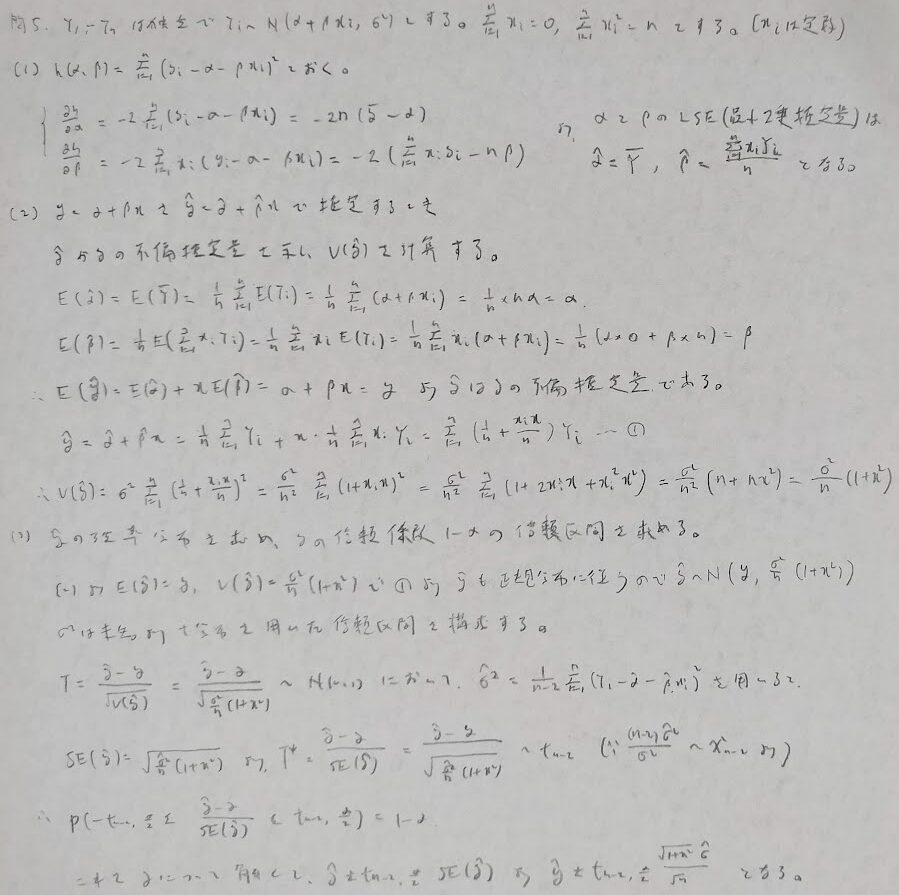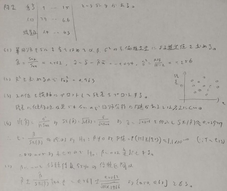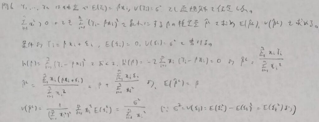 単回帰モデルに直した答案も可能です。問6以降はその方針で考えます。