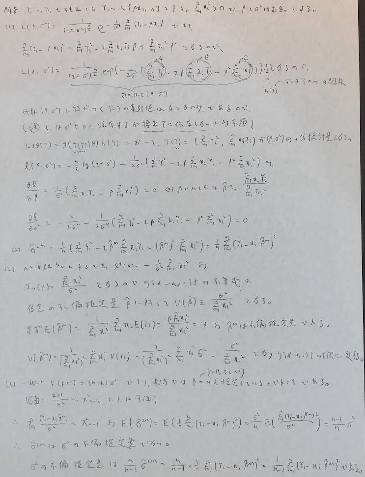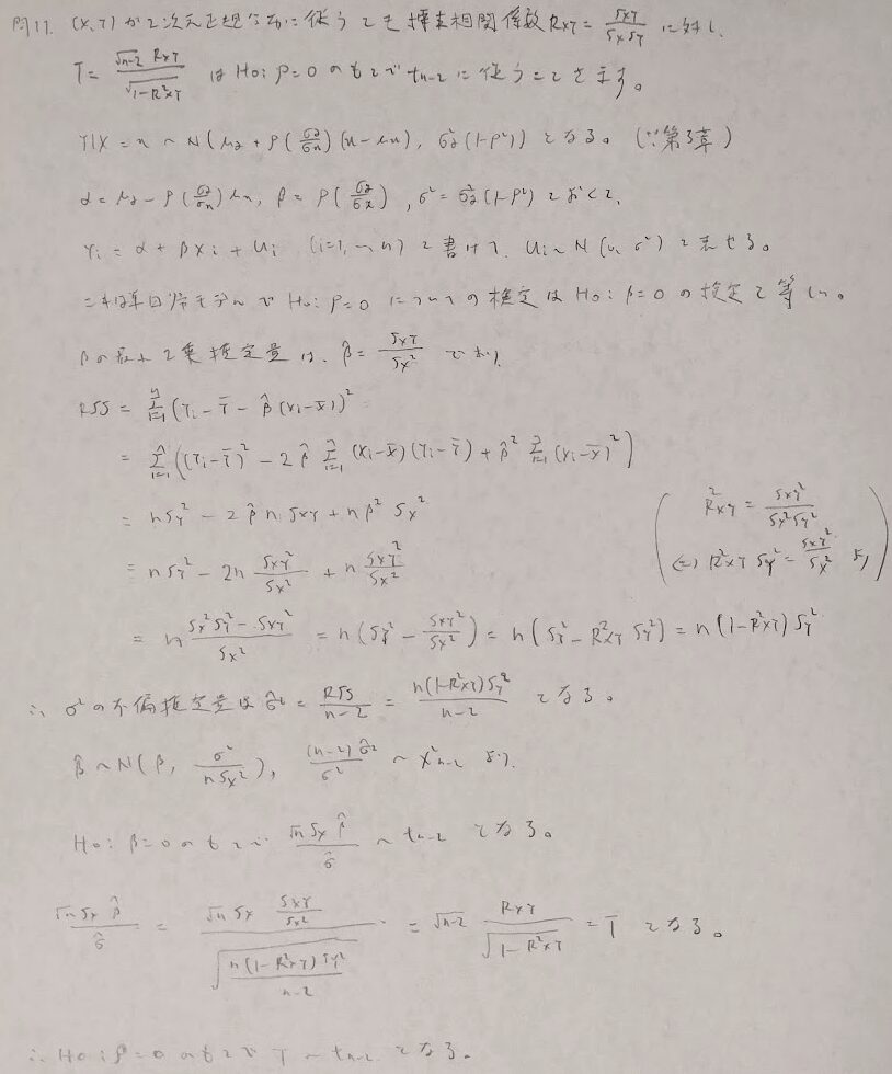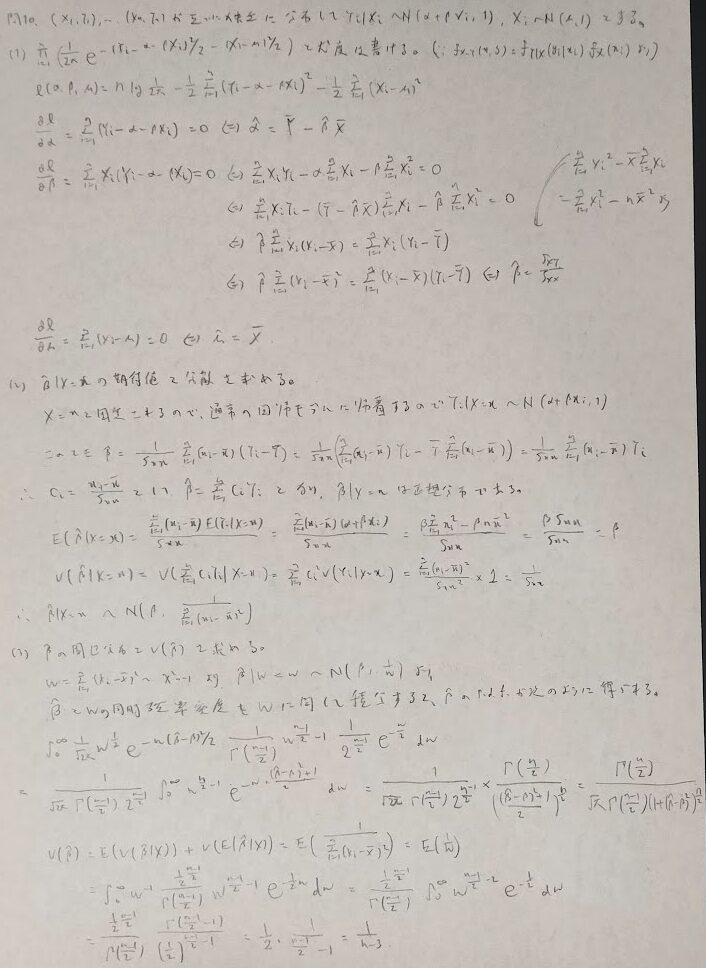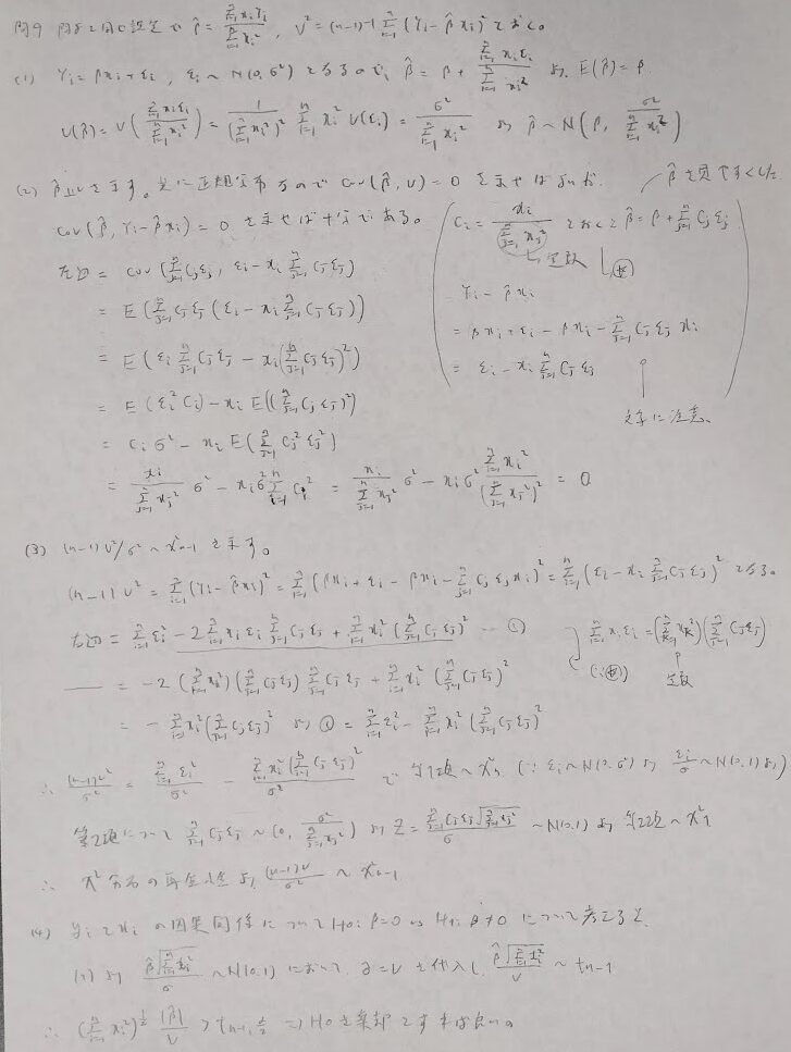 ポイントは(2)で置き換えること、そして(3)でカイ2乗分布の再生性を使おうとする意欲です。非常に難易度が高い問題ですが、とても良い問題だと思います。僕はこの1問を解くだけで2時間使いました。
