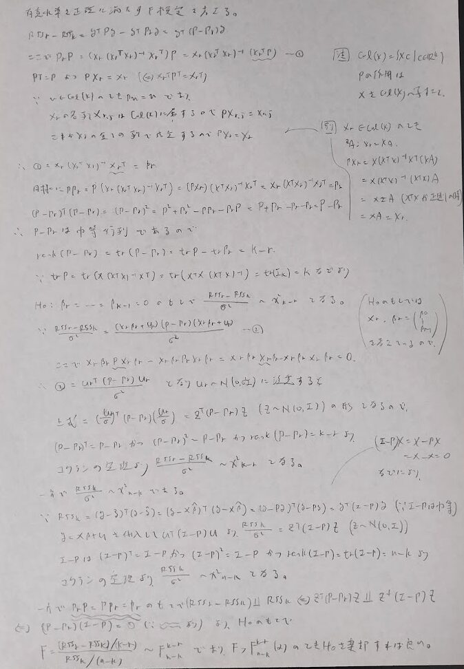 F統計量は残差平方和を意識すると覚えやすいです。
