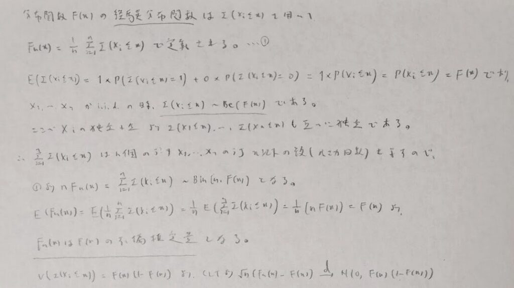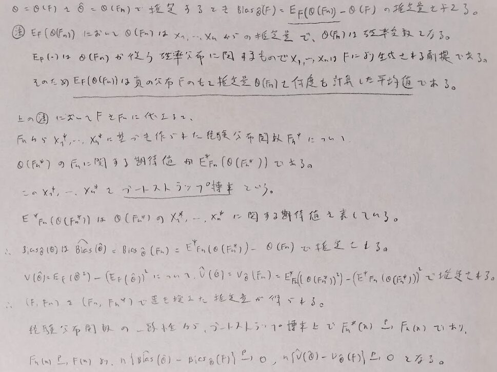 本章で唯一、細かい証明部分がわからず結果のみを書いてしまった箇所が終盤にある節です。そこの部分は非常に難易度が高いため、証明は統計検定1級でも出ないと思われます。