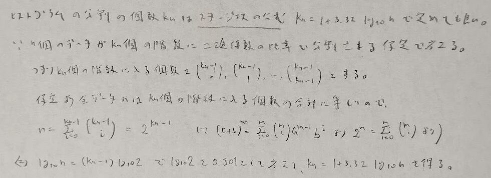 ヒストグラムの階級の幅についてスタージェスの公式というものがあります。