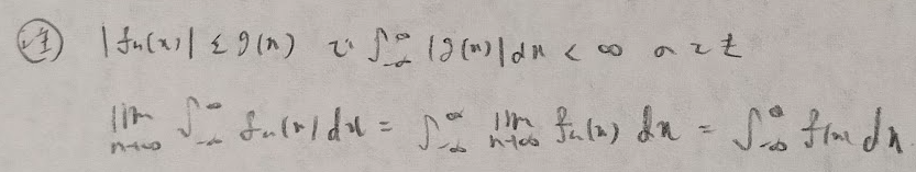 極限操作と積分操作の入れ替えは下記の根拠に基づいています。