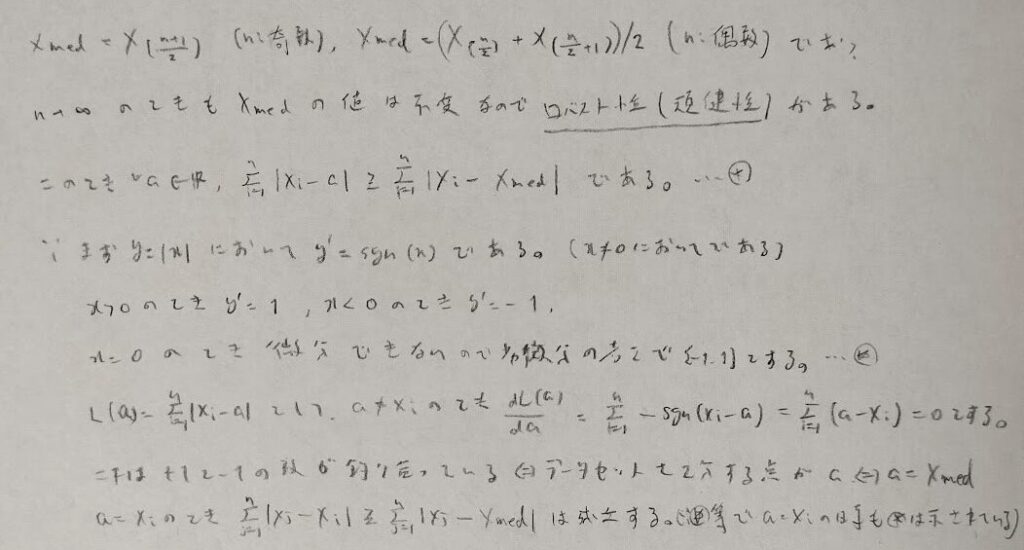 劣微分は尖点での微分の扱いについて補強的な意味合いで用いただけです。重要なのはメディアンもある数式を最小にする量であるということです。