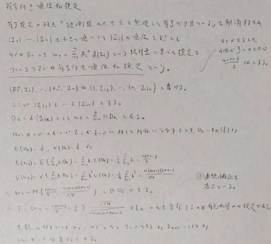 符号検定だけでは細かい部分まで把握できないことのデメリットを解消した検定が次の符号付き順位和検定です。