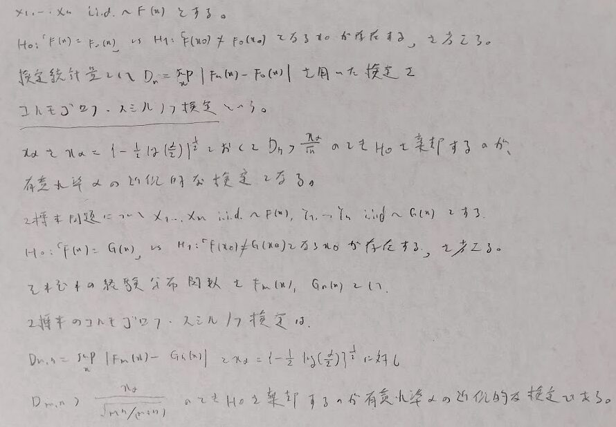 分布が等しいことを検定したいときに汎用的に用いることのできるコルモゴロフ・スミルノフ検定を学びます。