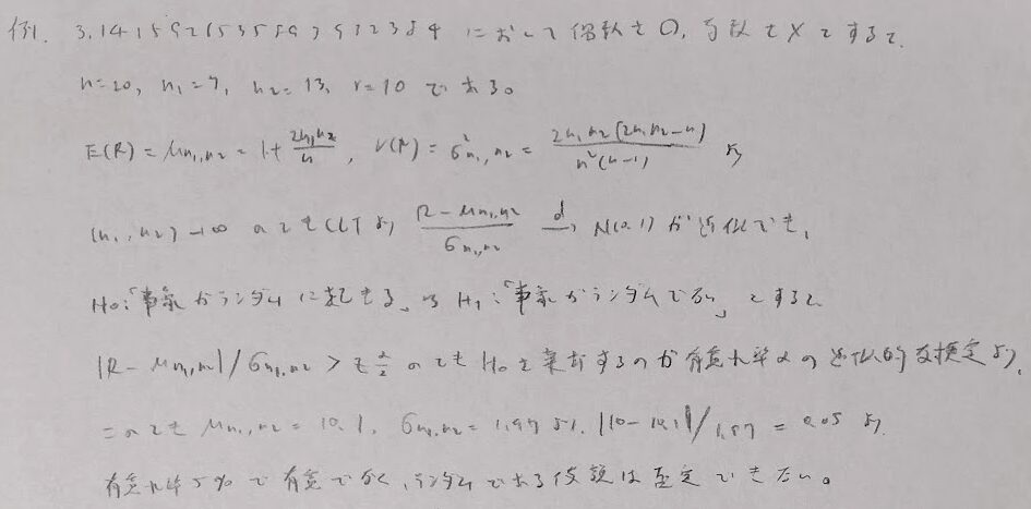 ランダム性について検定できる連検定を学びます。こちらはとても興味深い検定法です。