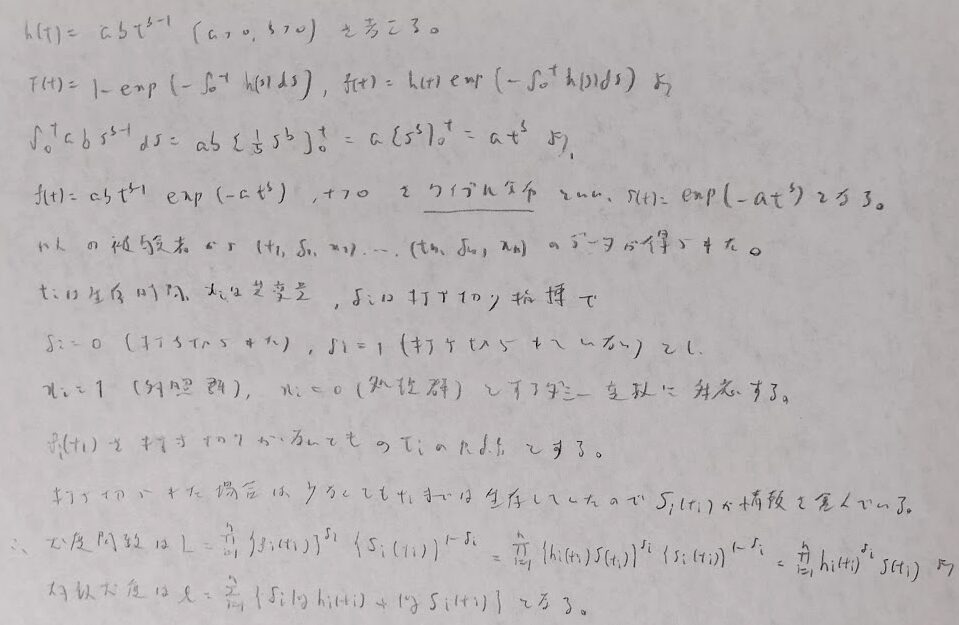 ハザード関数に自然な設定を取り入れたワイブル分布を学びます。
